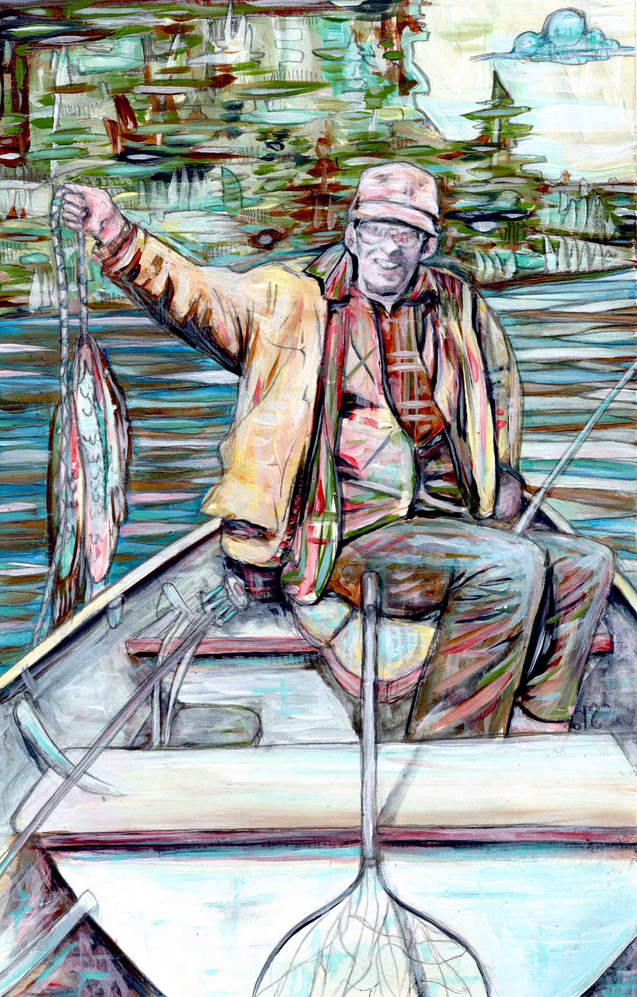 (Above is a painting I made of my grandpa, William Weggel, a lifelong fishing enthusiast)