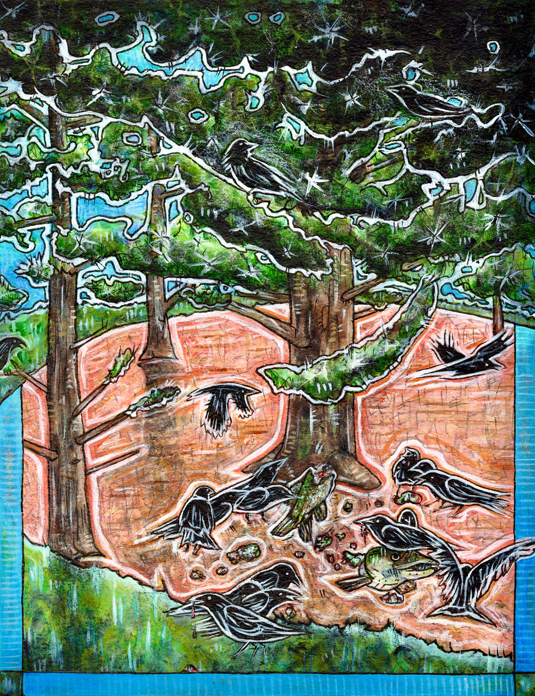 So my mom - my mom is… we’re very different. So my mom’s part native, and so she doesn’t like throwing away food. So she gives everything that we don’t eat - our scraps - everything that we’re gonna throw away goes to the animals. Under a pine tree in our yard. So she gave it to the crows, thinking… She goes, “Well, that’s been in there for years, hasn’t it?” I’m like, “Mom, I caught it two months ago!” and I was so pissed. I was like, “I was gonna pickle that!” And I was like, “Don’t you ever throw away my Northern pike again!” And I was so mad I never even got to eat that fish… But they’re my favorite birds, crows. So I’m like, “At least it went to my favorite bird.”