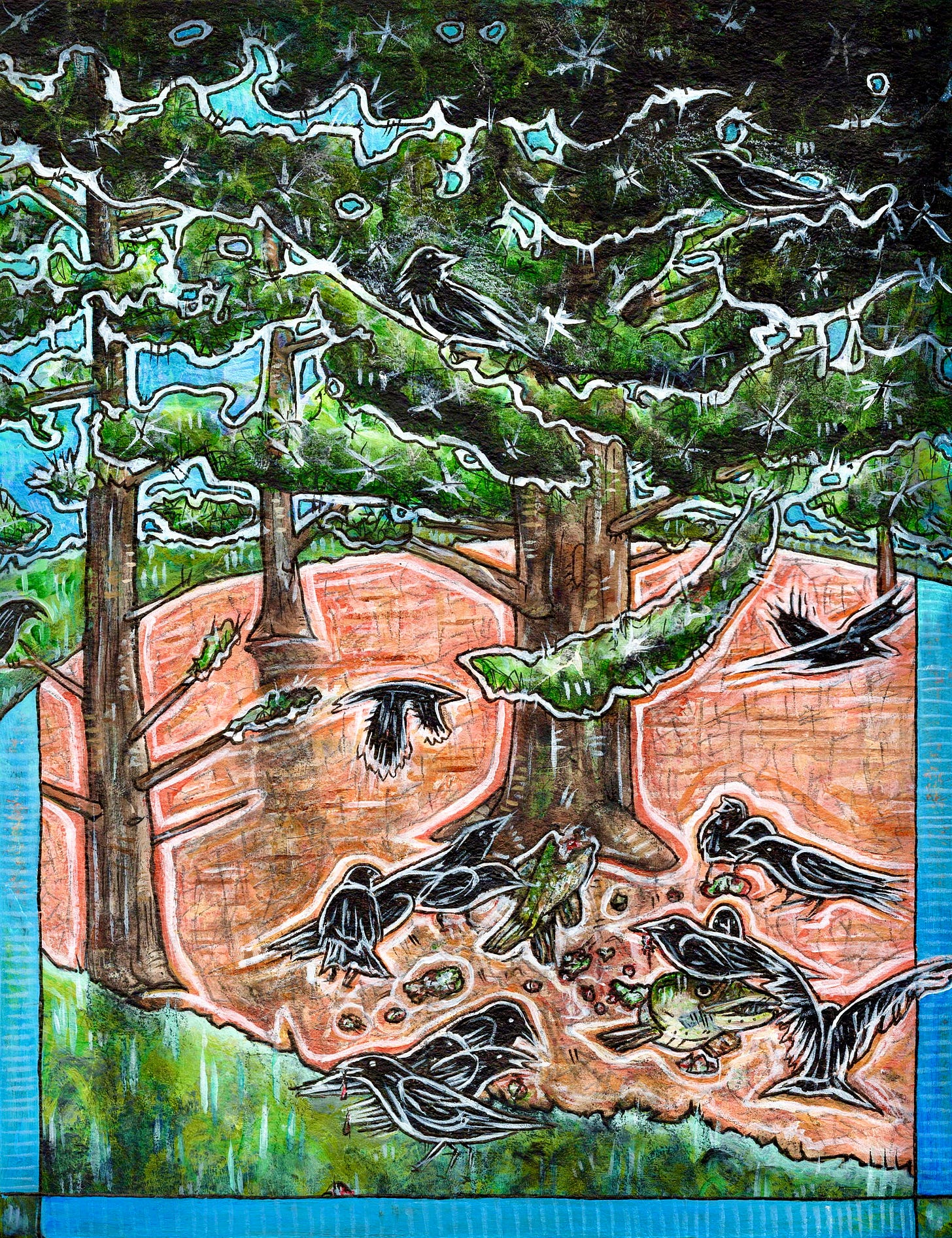 (I loved this story so much that I wanted to capture it in two paintings, because the finale to the tale is equally deserving of an illustration in my humble opinion. For this one I also recorded the fisherman’s story and transcribed it into text. He preferred to remain anonymous, so that’s why his name isn’t included. READ PART ONE FIRST.)